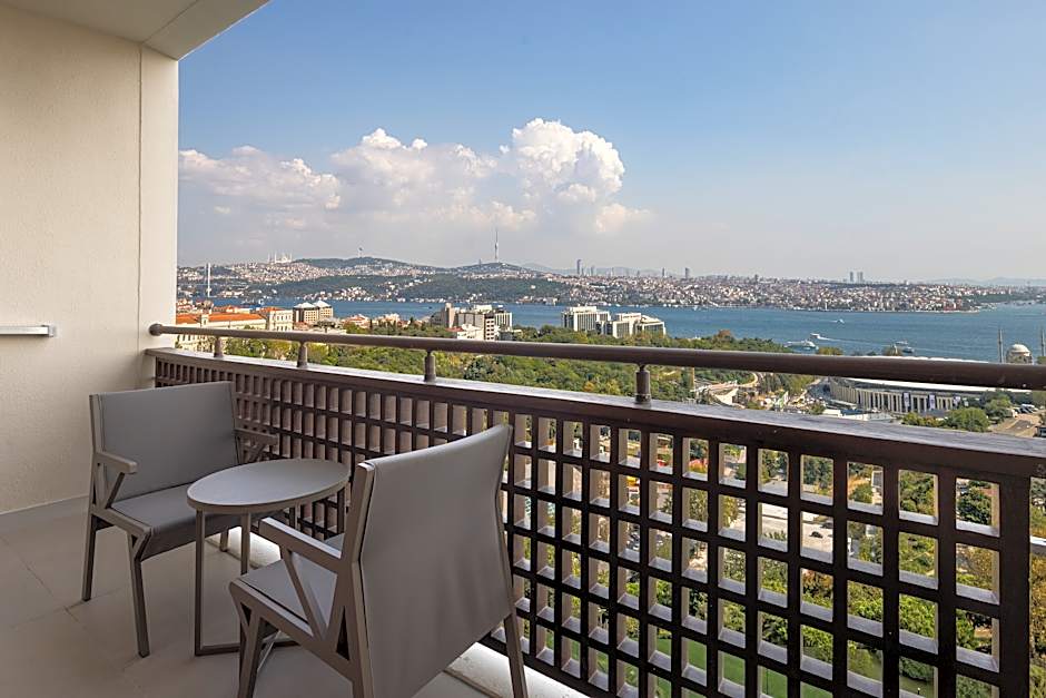 Featuring a private balcony overlooking to Bosphorus, this king room features large, floor-to-ceiling windows ideal for letting in some sunlight. You can catch up on work in the separate work area with large desk, and stay connected with complimentary WiFi. You can watch the HDTV with multinational channels. Stylish marble bathroom is at your disposal.